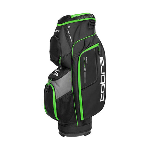 Du wünschst Dir ein Cartbag, dass Dir ausreichend Stauraum bietet und auch sonst durch viele Extras überzeugt? Dann legen wir Dir das XL Bag von Cobra ans Herz. Darin bewahrst Du Dein Equipment bestens geschützt und übersichtlich auf. Deine Schläger versenkst Du im 14-Fach Top mit extra großem Putterfach und durchgehenden Trennwänden, so klackern sie nicht aneinander und Du hast den richtigen mit einem Griff zur Hand. Weitere Organisationsmöglichkeiten sind die 6 Taschen und Mesh-Fächer, in denen Du Extra-Equipment wie Kleidung oder Bälle verstauen kannst. Eine Tasche ist speziell für Deine Wertsachen ausgelegt, im Inneren ist sie mit Velours gefüttert, wodurch Handy etc. geschützt werden. Dazu gesellen sich eine Balltasche und zwei Kleidertaschen.