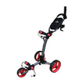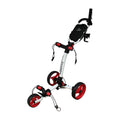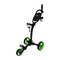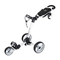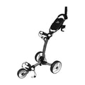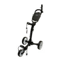 Der Trolley Trilite von Axglo nimmt dir das Tragen deines Cartbags ab, damit du all deine Kraft in deine Schwünge stecken kannst. Er lässt sich in Sekunden ein- bzw. Ausklappen und ist sofort zum Einsatz bereit. Seine stabile Konstruktion macht ihn sehr robust und das einfache und leichtgängige Manövrieren übers Gelände ist ein weiterer Pluspunkt dieses praktischen Trolleys. Dank seiner kleinen Packmaße (64 x 42 x 31 cm) passt er hervorragend in den Kofferraum und mit seinem Gewicht von 7 kg lässt sich der Trilite auch einfach herausnehmen. Mit der einfach zu bedienenden Handbremse fixierst du ihn zuverlässig auf jedem Gelände, so kannst du dich auf deine Schwünge konzentrieren und anschließend problemlos zum nächsten Loch weiterziehen. In der großen Konsole lassen sich allerlei Utensilien wie Bälle, Handy oder Geldbörse komfortabel unterbringen und sind so jederzeit zur Hand.