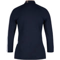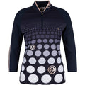 Das klassische Golf Polo Shirt ist kaum noch wiederzuerkennen, so modern und sportlich wurde es von umgesetzt. Das Shirt bestehend aus einer hochwertigen Scuba-Jersey-Ware, hat am Vorderteil einen grafischen Druck, in welchem Logo-Transfer-Drucke eingearbeitet sind. Der eng am Hals anliegende Stehkragen hat einen Einfass in der Trendfarbe Icegold, passend zum Transfer-Druck am Kragen. Für ein bequemes Anziehen sorgt ein kurzer Reißverschluss in der vorderen Mitte, der verdeckt eingenäht wurde. Die Raglanärmel sorgen für den sportlichen Touch und sind in einer modischen ¾ Länge. Als Kontrast wurde am Ärmel ein Einsatz in einem Loch-Jersey eingearbeitet. Auch hier wird die Trendfarbe Icegold in Form eines Transfer-Streifens auf dem Loch-Jersey-Einsatz aufgegriffen.