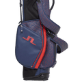 Es besitzt ein 6-Fach-Top und zahlreiche Taschen, darunter auch ein Kühlfach, damit du dich jederzeit zwischendurch erfrischen kannst. Mit dem wattierten und ergonomisch gestalteten Tragegurt lässt es sich komfortabel tragen und für besten Stand auf allen Untergründen sorgen die ausklappbaren Standbeine aus Kohlenstoffaser. In den praktischen und gut erreichbaren Taschen lässt sich deine Ausstattung wie Bälle oder Kleidung unterbringen. Das Play ST ist aus strapazierfähigem und pflegeleichtem Kunstleder gefertigt und mit dem Monogramm von Lindeberg bedruckt. Ein weiteres Premium-Feature ist der Griff mit Lederdetail, dadurch erhält das Standbag einen zusätzlich exquisiten Look.