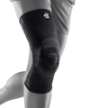 Die Bandage umschließt dafür das Gelenk. Die Kniescheibe umringt eine anatomisch geformte Pelotte, ein spezielles Funktionselement, das Druckspitzen auffängt und weiterleitet. Wird das Knie bewegt, massiert die Pelotte zusammen mit dem Gestrick das Bindegewebe und die Muskeln.