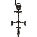 Dank der großen Räder in Übergröße sowie dem breiten Radstand mit tiefem Schwerpunkt steht dieser Trolley kippsicher da. Die individuell anpassbare Taschenauflage ermöglicht es dir sowohl Stand- als auch Cartbags sicher am Wagen anzubringen. Eine besonders rückenschonende Push-Funktion sowie ein höhenverstellbarer Griff sorgen dafür, dass das Schieben des Wagens bequem bleibt.
