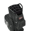 Am Top befinden sich zwei praktische Tragegriffe mit denen sich das Golfbag leicht befördern lässt, zum Beispiel aus dem Kofferraum heraus oder hinen. Ein komfortabler Schultergurt mit dem du dir das Cartbag umhängen kannst, rundet die Ausstattung ab.