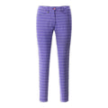 Garnmischung aus Baumwolle und Polyamid, leicht und angenehm zu tragen, Sunblock-Finish zum Schutz vor UV-Strahlen: Subaro ist eine Hose für Damen, perfekt für die Sommersaison, On und Off Course. Die schmale Passform und das "Gate Pattern"-Muster definieren seine DNA; die kontrastierenden dünnen Paspeln lassen das Bein schlanker wirken. Kostbar sind die Details wie die silberfarbene Schnalle und die Western-Style-Taschen.