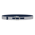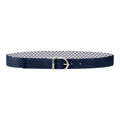 Saffianleder auf der einen Seite, vollflächig bedrucktes Gewebe auf der anderen: Under ist ein wendbarer Damen-Gürtel mit einer Breite von 30 Millimetern. Die Oberfläche des Gewebes nimmt das Muster der Kollektion auf, um mit den Kleidungsstücken der Marke in Dialog zu treten. Raffiniert ist die drehbare Schnalle mit silberfarbener Verzierung. Dieses Accessoire wird in Italien gefertigt.