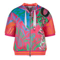 Mit dieser Jacke wird der Gehsteig zum Laufsteg. Die sportive Jacke in einer trendigen Oversize-Linie besteht aus einer hochwertigen Scubaware. Die große Kapuze ist mit einem Falzgummi eingefasst. Sehr modisch ist die innovative Linienführung mit angesetzten Ärmeln und den geschwungenen Nähten. Die Ärmel im Lagenlook sind im Oberarmbereich offenkantig verarbeitet, der Ärmelsaum der schmaleren Ärmel ist mit einem Falzgummi eingefasst. In der vorderen Mitte ist ein sichtbarer Zwei-Wege-Reißverschluss eingearbeitet und in die modischen Nahtführungen wurden im Vorderteil zwei unsichtbare Reißverschlusstaschen eingenäht. Ein Highlight ist der kontrastierende neonfarbige Logo-Transferdruck im Rückenteil. Der Farbkontrast spiegelt sich auch im Netzfutter der teilweise gefütterten Jacke wider. Der Saum ist ebenfalls mit einem Falzgummi eingefasst und am Vorderteil ist am Saum ein hochwertiges Sportalm-Logo-Etikett platziert.