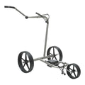Die Ticad Trolley Familie hat einen stilvollen und technisch hoch entwickelten Zuwachs bekommen, den Ticad Tango mit einer komfortablen Faltmechanik und Titanrahmen. Hier wurde jedem Detail höchste Aufmerksamkeit geschenkt, egal ob Griff, Räder, Rahmen oder Akku. Das Titan macht den Rahmen komfortabel im Transport und die Räder aus GFK (Glasfaserkunststoff) sind äußerst robust und leichtgängig. Er besitzt zudem eine Drehgriffsteuerung mit automatischer Vorlauffunktion, dadurch kannst Du ihn ohne Zutun zum nächsten Abschlag vorrollen lassen und er hält sicher an. Dank der elektromagnetischen Parkbremse bist Du im Gelände sicher unterwegs, denn sie blockiert zuverlässig die Räder des Trolleys, so steht er auch auf Hängen vollkommen sicher. Du hast auch die Option, mit einem Knopfdruck die mechanische Freilauffunktion einzustellen und ihn wie einen herkömmlichen Handtrolley zu schieben. Einen stilvollen Look erhält der Tango zusätzlich durch die feinstufig höhenverstellbare Deichsel mit einem hochwertigen Teil-Ledergriff. Auch der starke Lithium-Ionen-Akku lässt keine Wünsche offen, er besitzt eine 27+ Loch Reichweite und macht den Komfort des Tango perfekt. Mit dem kompakten Rahmenstaumaß von 67 x 64 x 12,5 cm lässt sich der Tango problemlos im Kofferraum verstauen ohne viel Platz wegzunehmen. Gewicht vom Rahmen inklusive Räder: 6,3 kg Mit dabei sind ein passender hochwertiger Schirmhalter und ein praktischer Scorekartenhalter. Jetzt kann es bestens ausgerüstet los gehen!